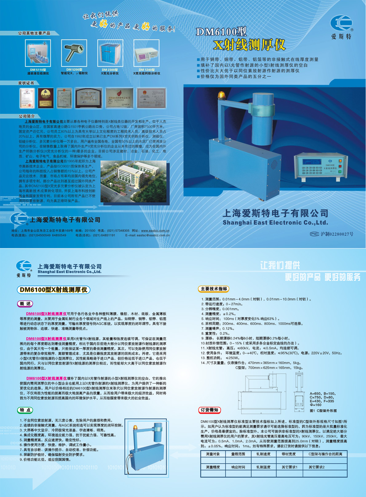性价比大大优于以同位素放射源作射源的测厚仪。价格仅为国外同类产品的五分之一。可用于各行各业中各种塑料薄膜、橡胶、木材、纸板、金属薄板等厚度的测量,主要用于金属轧制行业各个领域对生产线上的产品,如带钢、铜带、铝带、铝箔等进行动态状态下的厚度测量,可输出厚度信号到AGC系统,以实现厚度的闭环调节。具有不接触被测物体、连续、快速、准确测量等优点。