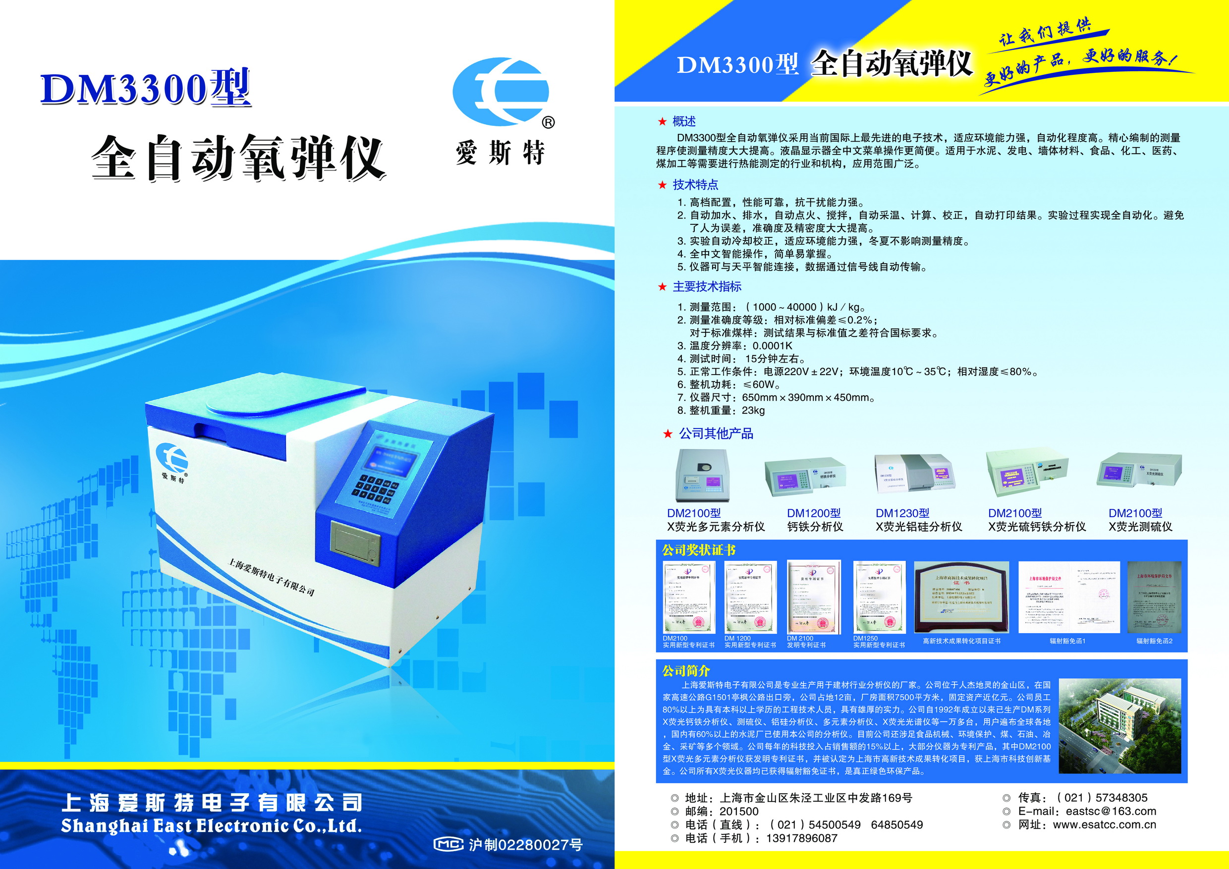 DM3300型全自动氧弹仪采用当前国际上先进的电子技术,适应环境能力强,自动化程度高。精心编制的测量程序使测量精度大大提高。液晶显示器全中文菜单操作更简便。适用于水泥厂、电厂、煤矿、洗煤厂、制砖厂、化工厂等产煤用煤企业,应用范围广泛。1. 测量范围:(1000~40000)kJ/kg。2.测量准确度等级:相对标准偏差≤0.2%;对于标准煤样:测试结果与标准值之差符合国标要求。3. 温度分辨率:0.0001K。4. 测试时间:15分钟左右。5. 正常工作条件:电源220V±22V;环境温度10℃~35℃;相对湿度≤80%。6.整机功耗:≤60W。7.仪器尺寸:650mm×390mm×450mm。