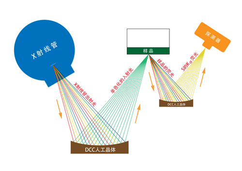 DCC按其曲面又分为半聚焦(Johann),全聚焦(Johansson)和对数螺线(Logarithmic Spiral)等。其中半聚焦只是部分满足衍射条件,是最差的。全聚焦虽然是完全满足衍射条件且是点对点聚焦的,但其制造工艺极其复杂,除弯曲外它必须有一个磨成R曲面的过程,天然晶体极不容易磨制,而人工晶体是不可能磨制的。另外天然晶体通常单色化过好,导致靶材特征X射线只有一部分被衍射,积分衍射率低。