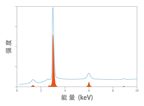 图2. X射线管的出射谱,和经LSDCC单色化的特征X射线入射谱